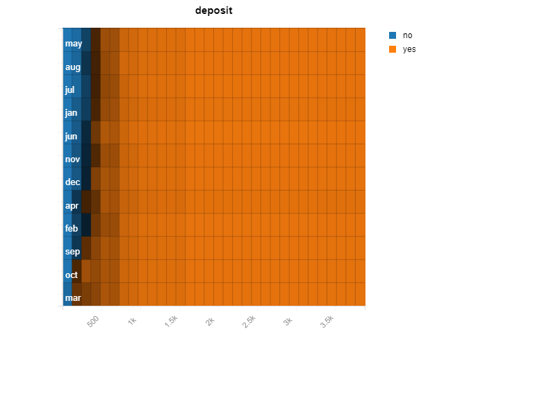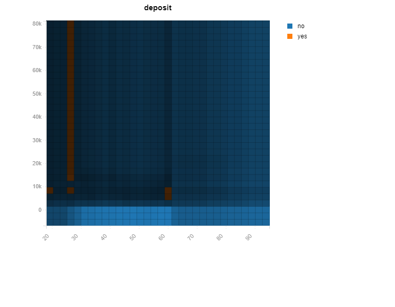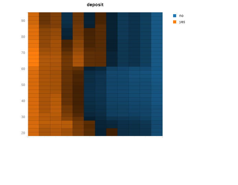 Variable Objetivo: DEPOSIT Valores: yes (naranja) no (azul)